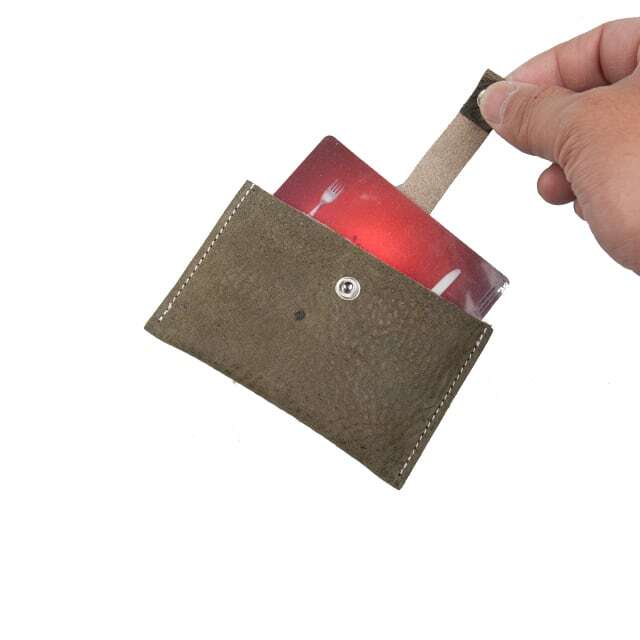 紐を軽く引っ張ると、中のカードがスッと出てくる仕組み。スマートに取り出せて、ビジネスシーンでも好印象。名刺入れとしても、カードケースとしても活躍します。